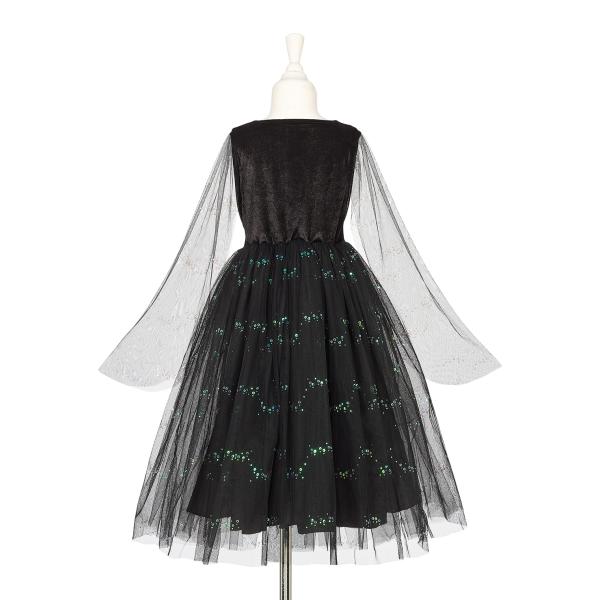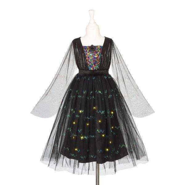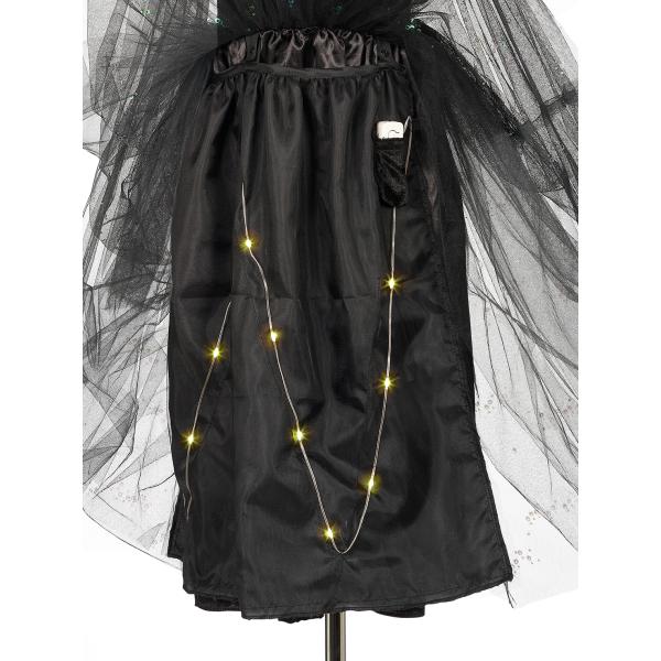 Čarovný kostým pro každou malou čarodějnici. Když se čarodějnice Agatha vznáší po noční obloze, její sukně svítí jako hvězdy. A tyto šaty to opravdu umí – mají totiž v sukni schované malé světýlka, která svítí ve tmě.