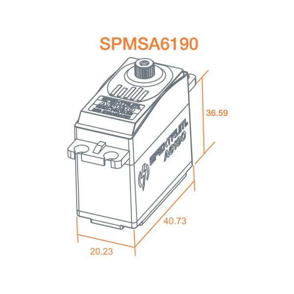 HV digitální servo Spektrum A6190 Metal Gear nabízí působivý výkon pro piloty, kteří hledají vynikající servo standardní velikosti pro svá sportovní letadla. A6190 dokáže při napájení 2S LiPol (8,4V) produkovat točivý moment 8,3 kg-cm při rychlosti 0,17 s/60°. Jeho kovové převodové ústrojí s nízkým opotřebením je poháněno 5-pólovým feritovým motorem a je podporováno dvěma kuličkovými ložisky pro hladký chod. Vyznačuje se přesným ovládáním polohy a poskytuje spolehlivost, konzistenci a výkon.