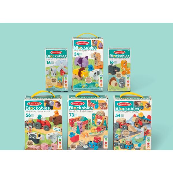 Melissa & Doug Blockables™ jsou kostky, které můžete spojovat, skládat na sebe a hrát si s nimi!