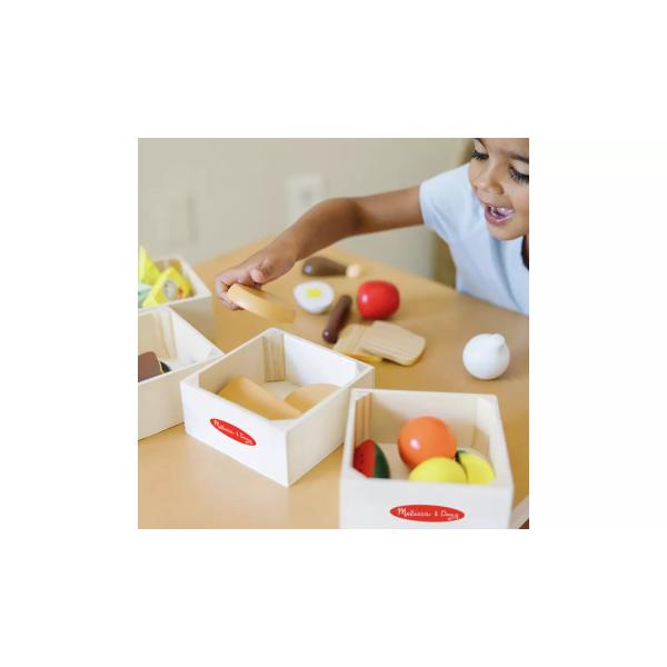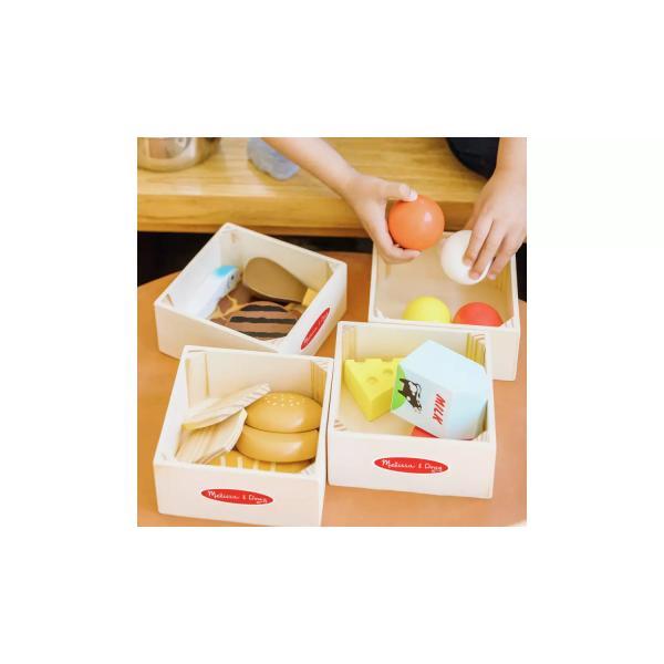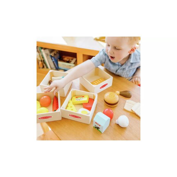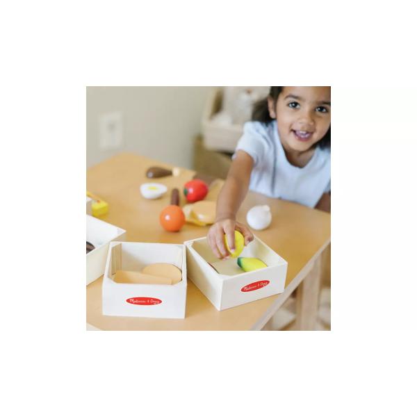 Děti milují spojení hraní a učení, kreativity a zkoušení nových věcí. Díky dřevěným potravinám od Melissa & Doug se hravou formou naučí, z čeho se skládá zdravý jídelníček, a mohou si v dětské kuchyňce (prodává se samostatně) připravit oblíbená jídla nebo zkoušet netradiční kombinace.