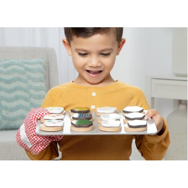 Pečení je s herní sadou sušenek Melissa & Doug vždy skvělý nápad! Děti si mohou podle libosti vykrajovat dřevěné sušenkové těsto, pokládat ho na plech, „péct“ a následně zdobit a servírovat.