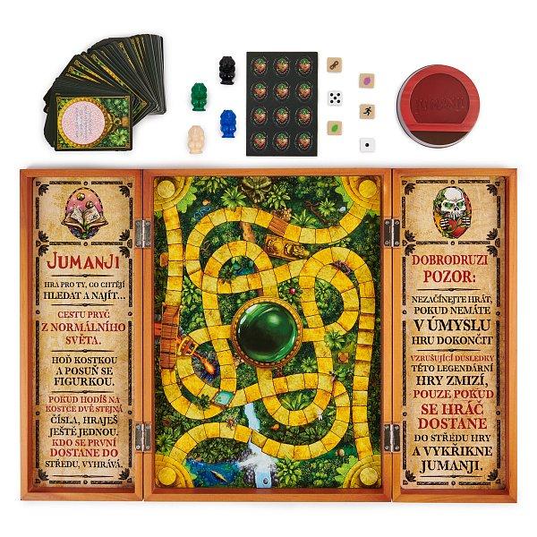 Zastavující lvi. Dusající nosorožci. Chňapající krokodýli. V divokém světě Jumanji vás od nich všech dělí jen jediný hod kostkou. Vezměte figurku, hoďte osmistěnnou kostkou a procházejte džunglí. Otočte kartu s nebezpečím. Pomocí dekodéru odhalte tajnou zprávu a zjistěte, zda nedojde k katastrofě. Vaši spoluhráči musí závodit s časem, aby vás zachránili. Džungle postupně začíná zaplňovat mřížku zkáz. Pokud se mřížka zaplní, džungle vás přemohla a vy i vaši spoluhráči jste prohráli. Pokud jste první, kdo se dostane doprostřed, než se mřížka zaplní, zakřičte „Jumanji!“ a vyhráváte! Rozměr balení: 38,4x29x5,7. Věk 8+