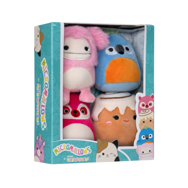 SQUISHMALLOWS Micromallows 4Pack – Mýval, Bigfoot, Ara, Skořicová rolka