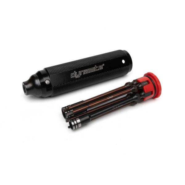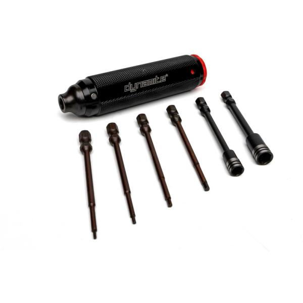 Charakteristika:Šroubovák s 6 ks výměnnými bity, které které jsou bezpečně uloženy v hliníkové rukojeti, budete potřebovat při servisu RC aut v měřítku 1:10. Bity lze použít do jakékoli elektrické ruční vrtačky nebo šroubováku. Rozměry bitů – 6-hr. 0,050″, 1.5mm, 2mm, 2.5mm a nástrčné 5.5mm a 7mm.