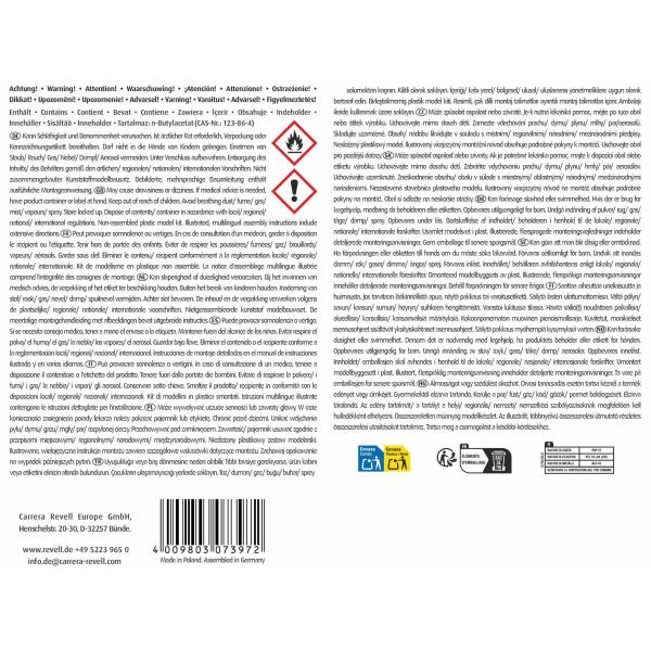 Varování! Obsahuje: n-Butylacetat. Hořlavá kapalina a páry. Může způsobit ospalost nebo závratě. Je-li nutná lékařská pomoc, mějte po ruce obal nebo štítek výrobku. Uchovávejte mimo dosah dětí. Před použitím si přečtěte údaje na štítku. Chraňte před teplem/jiskrami/otevřeným plamenem/horkými povrchy. Zákaz kouření. Tento výrobek není hračka!