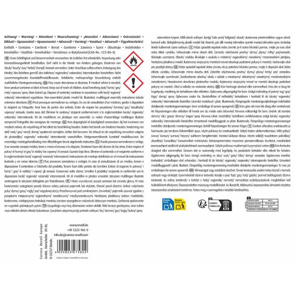 Varování! Obsahuje: n-Butylacetat. Hořlavá kapalina a páry. Může způsobit ospalost nebo závratě. Je-li nutná lékařská pomoc, mějte po ruce obal nebo štítek výrobku. Uchovávejte mimo dosah dětí. Před použitím si přečtěte údaje na štítku. Chraňte před teplem/jiskrami/otevřeným plamenem/horkými povrchy. Zákaz kouření. Tento výrobek není hračka!