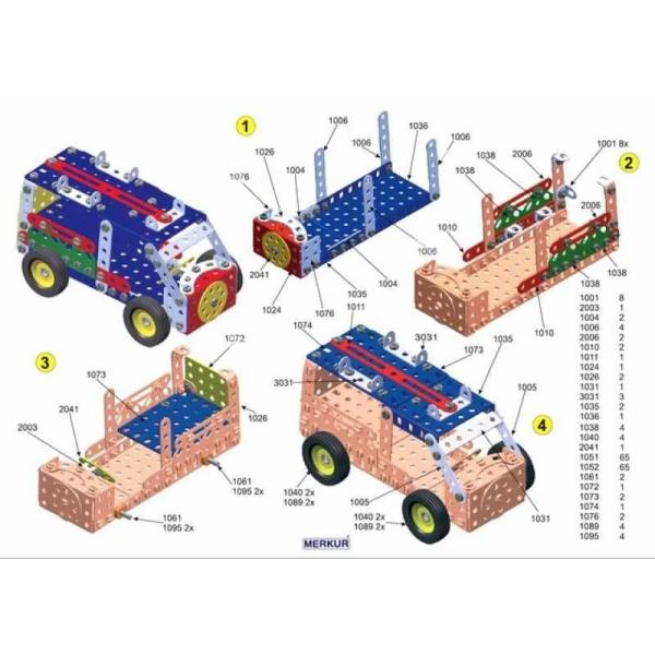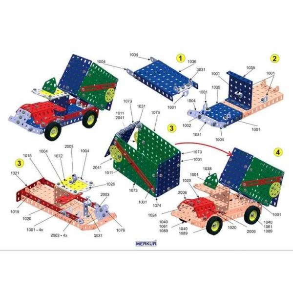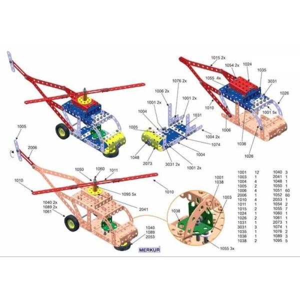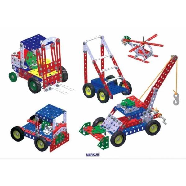 Stavebnice Merkur 3 je univerzální klasická stavebnice. Obsahuje základní sestavu dílů, jako jsou pásky, oblouky, pláty, malé kola, pneumatiky, včetně matic a šroubů. Součástí je také knížka s návody, obsahující 30 různých modelů, jako je vagón, jeřáb, pásová pila, nákladní auto, výtah a pod. Na začátku knížky jsou popisovány postupy, jako je spojování dílů, použití kontra matice, řešení lanových převodů, uložení hřídele v ložiskách a pod.