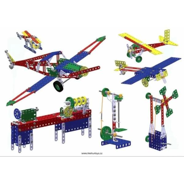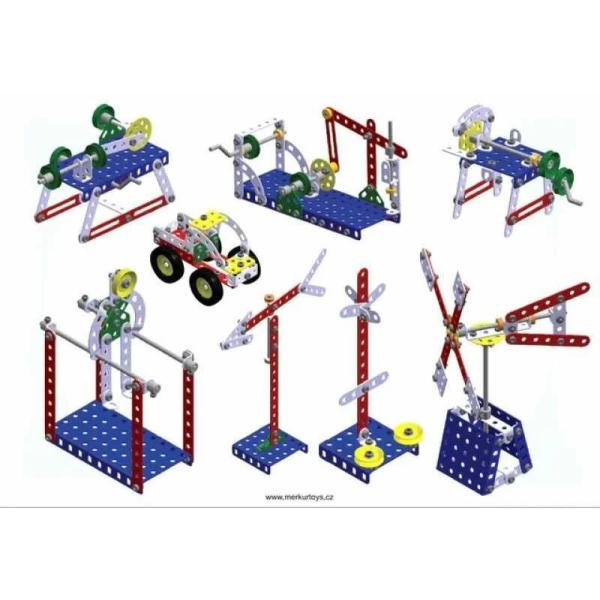Stavebnice Merkur 4 je dvouvrstvá klasická velká stavebnice, obsahující mimo základních součástek i díly nutné ke stavbě nákladních automobilů, letadel a formulí. Součástí je i návodová knížka obsahující návody na stavbu 27 modelů, například lunochod, buggy, nákladní automobil, formule, jeřáb a mnoho dalších. Počet dílů 602 Počet vrstev 2 Rozměry 360x270x55 mm Váha 2.7 kg