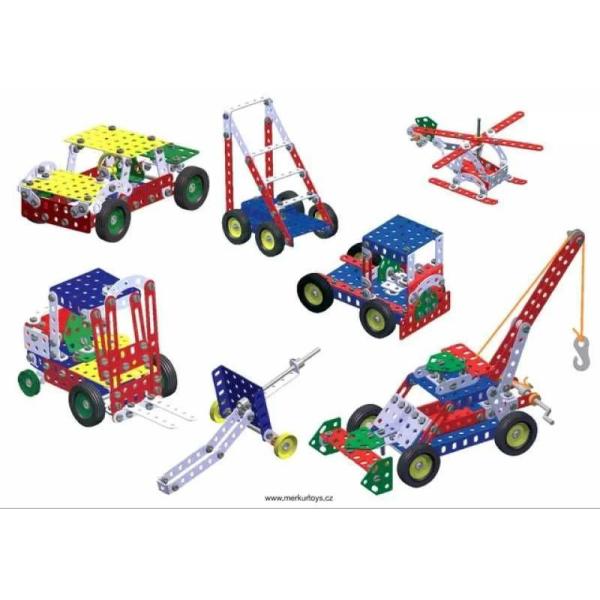 -5%Stavebnice Merkur 4 je dvouvrstvá klasická velká stavebnice, obsahující mimo základních součástek i díly nutné ke stavbě nákladních automobilů, letadel a formulí. Součástí je i návodová knížka obsahující návody na stavbu 27 modelů, například lunochod,…