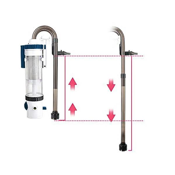 Nasávací trubici je možné výškově upravit podle potřeby, takže filtr spolehlivě pracuje už od hladiny 5 cm – ideální i pro mělké nádrže či terária s vodní plochou.