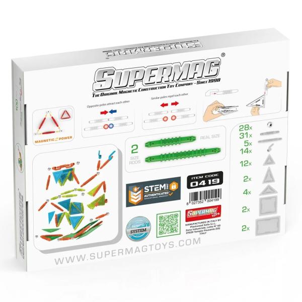 SUPERMAG je prémiová magnetická stavebnice, která spojuje všechny silné stránky patentovaného systému do jedinečné a nenapodobitelné linie. Umožňuje tvořit nespočetné množství konstrukcí, které lze rozšiřovat, rozebírat a znovu skládat – s přesností a technickostí skutečného projektu. Hračky Supermag nejsou jen hračky; jsou to vzdělávací nástroje, které podporují STEM (Věda, Technologie, Inženýrství a Matematika) vzdělávání. Zapojením se do hry s hračkami Supermag si děti rozvíjejí kritické myšlení, zlepšují pochopení vědeckých konceptů a objevují inženýrské principy prostřednictvím praktické hry.