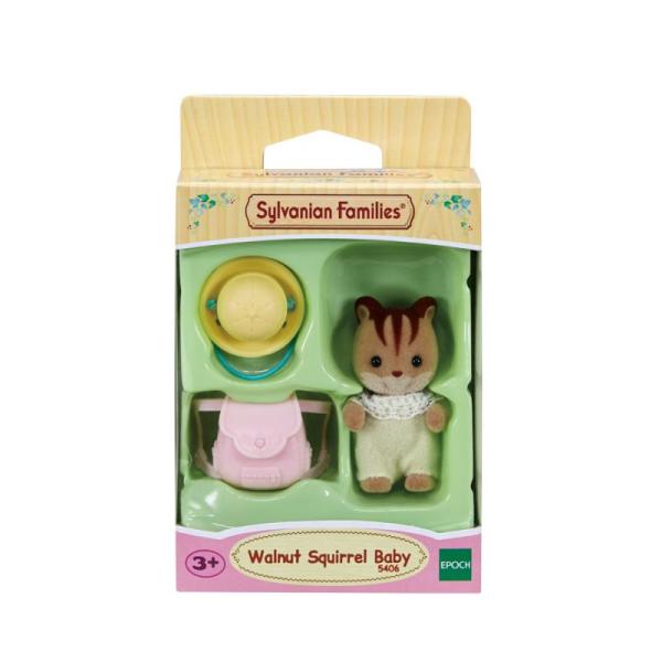 Baby Oříšková veverka miluje skákání a běhání v loužích, které se vytvoří vždy po dešti. Pokaždé přijde domů celá od bláta a maminka musí všechno hned vyprat včetně jejího oblíbeného klobouku a batohu. Baby Oříšková veverka se chce naučit šplhat po stromech jako její velký bratříček. Herní sady a figurky Sylvanian Families jsou nadčasové a vysoce kvalitní hračky. Hra podněcuje představivost dítěte. Figurky jsou vyrobeny z plastu, který je potažen jemňoučkým sametem. Očka jsou z černých korálků. Všechny končetiny jsou pohyblivé a hlavička otáčecí. Oblečení je vyrobeno tak, aby se dalo opakovaně svlékat a oblékat. Výška dětí je 6,5 cm. Sada obsahuje: 1x baby figurka veverky, 1x klobouk, 1x batoh. Věk: 3+