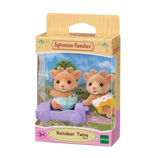 Dvojčata z rodiny sobů mají charakteristické roztomilé parůžky. Sada obsahuje dvě malé figurky dvojčat Ollieho a Ginger pokryté měkkým semišovým kožíškem a také vozítko ve tvaru auta. Dvojčata jsou oblečena do zábavných, barevných oblečků s krajkou. Vozítko je možné kombinovat s vozidly z jiných sad s dvojčaty. Hračky Sylvanian Families rozvíjejí představivost a podporují děti v hraní rolí. Hraní s figurkami Sylvanian Families rozvíjí kreativitu a učí emoce prostřednictvím vytváření a vyprávění příběhů na základě každodenních zkušeností a pozorování světa. Vyznačují se nejvyšší kvalitou a výjimečným důrazem na detaily. Figurky Sylvanian Families mají pohyblivou hlavu. Oblečení je vyrobeno tak, aby se dalo opakovaně svlékat a oblékat. Balené v krabičce. Rozměry balení: 12 x 7,5 x 3,5 cm. Věk: 3+
