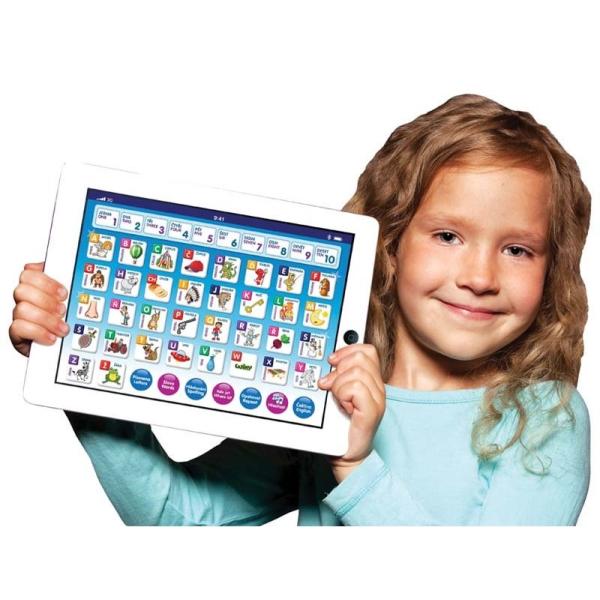 Dětský maxi tablet. Škola hrou naučí vaše dítě anglicky počítat a hláskovat v českém i anglickém jazyce, naučí děti počítat od 1 do 10, seznámí je s abecedou. Obsahuje hry hledání písmenek, slov a číslic. Rozměry 24x18x2cm.