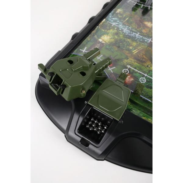 Stolní tanková bitva. Účelem hry je co nejdříve porazit nepřítele. Každý hráč umístí své čtyři tanky do speciálních otvorů na hrací desce vedle sebe a rovnoměrně si rozdělí kuličky. Každé dělo může být vyzbrojeno dvěma míčky (jeden míček v každém slotu děla). Rozměry balení 55 x 33 x 9 cm. Vhodné pro děti od 5 let.