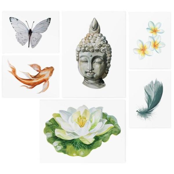 Sada dočasných tetování Zen s asijskou tematikou je to, co potřebujete na exotické dovolené.