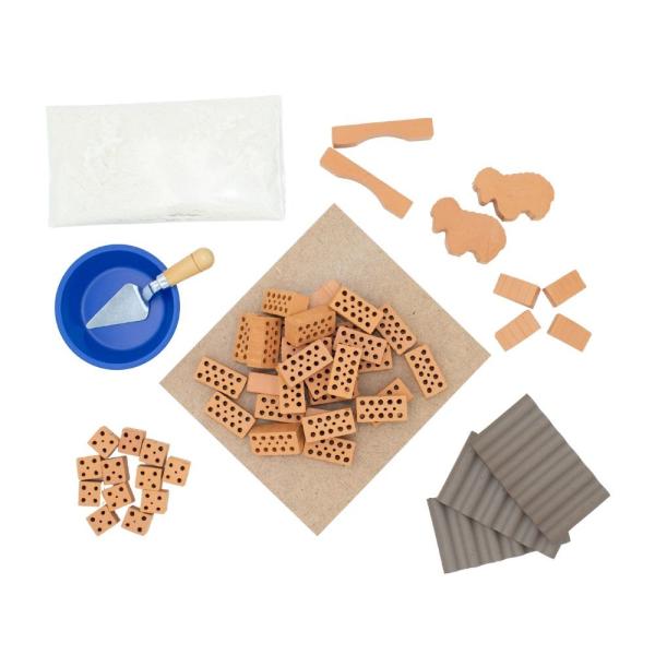Balení obsahuje vše potřebné – od cihel přes malou lžíci na maltu až po ilustrovaný návod.