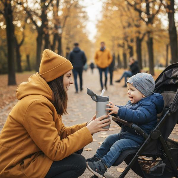 Jednoduché pití pro děti: Měkký silikonový náustek a brčko podporují samostatnost při pití.