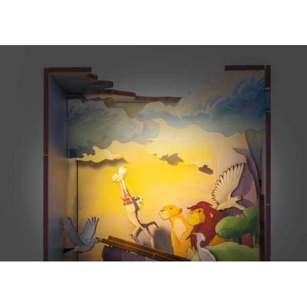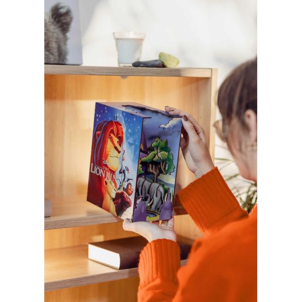 Dodejte své knižní sbírce zvláštní nádech s tímto jedinečným knižním koutem v designu „Lví král“. Prázdná místa mezi vašimi knihami se promění v kouzelný miniaturní svět, který oživí příběh Disneyho klasiky.