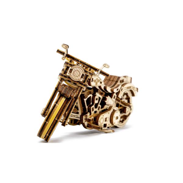 Tento model Cruiser V-Twin, postavený na základě skutečných motocyklů, je vybaven zatahovacím mechanismem, který mu umožňuje ujet na vzdálenost přibližně 1 metr. Motocykl poháněný gumovým motorem se může pohybovat vpřed i vzad, čímž zachycuje podstatu své mechanické inspirace. Naše laserem vyřezávané dřevěné modely kombinují nejvyšší přesnost s jednoduchou montáží, která je prostě radost. Díky chytrým funkcím, které oživují dřevěné modely, nabízejí fascinující zážitek.
