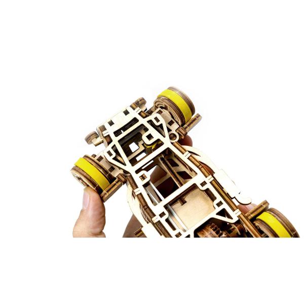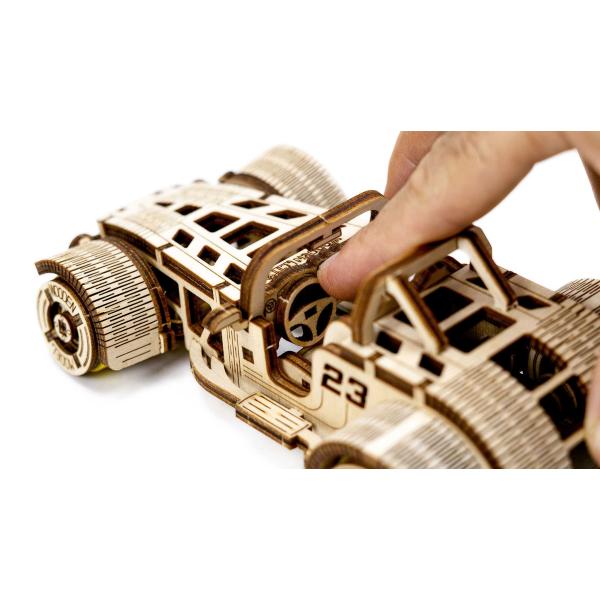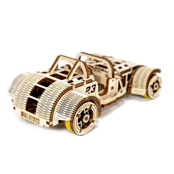 Roadster je stroj, který hraje vlastní ligu. Model je poháněn gumovým motorem a pohybuje se dopředu a dozadu až o jeden metr. Díky zatahovacímu mechanismu se u tohoto modelu budete cítit jako za volantem skutečného auta. Naše laserem vyřezávané dřevěné modely kombinují nejvyšší přesnost s jednoduchou montáží, která je prostě radost. Díky chytrým funkcím, které oživují dřevěné modely, nabízejí fascinující zážitek.