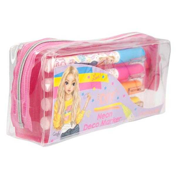 Barevné neonové fixy s designem oblíbené značky Top Model jsou oblíbeným nástrojem pro kreslení a malování. Malování nyní bude ještě větší zábava. Jednoduše protřepejte fix a začněte kreslit! Inkoust lze odstranit z omyvatelných povrchů vlhkým hadříkem. Úžasný dárek pro všechny malé umělkyně. Balení obsahuje 4 barvy: růžová, oranžová, světle modrá, žlutá. Síla hrotu: 2 mm. Vhodné pro děti od 3 let.