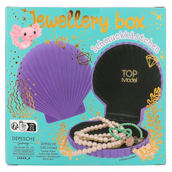 Kvalitně zpracovaná šperkovnice ve tvaru mušle značky Top Model. Prostorný úložný vnitřní prostor se saténem pro všechny vaše šperky. Praktické uspořádání a pevný materiál jsou zárukou úspěchu a dlouhé životnosti tohoto krásného dárku vhodného pro všechny parádnice. Rozměry: 12,8 x 12,8 x 5 cm Věk: 3+