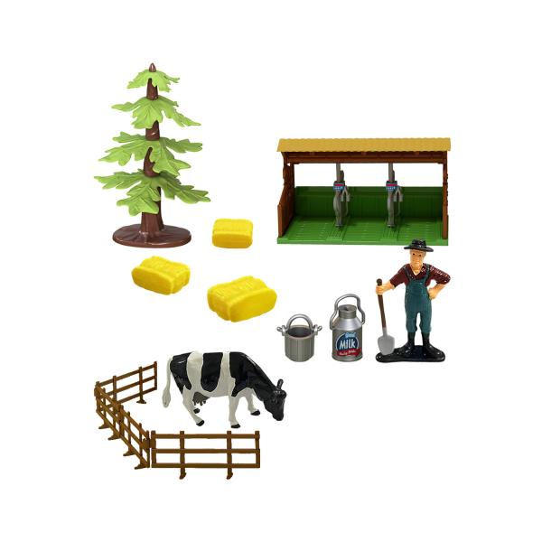 Velký farmářský plastový traktor s vlečkou na seno a příslušenstvím. Tento set je důležitým pomocníkem pro každého malého hospodáře.