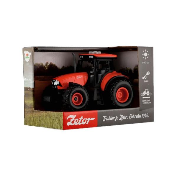 Krásný model zemědělského traktoru Zetor s dlouholetou tradicí, kterou musí milovat snad každý. Vyražte na pole, jako správný farmář s pořádným traktorem se světlem a zvukem! Stiskněte tlačítko a uslyšíte zvuk couvání, druhé tlačítko zatroubí a třetí startuje motor. Traktor je na setrvačník. Traktor zajisté okouzlí každého milovníka traktorů. Hračka je na baterie 3x AG13, které jsou součástí balení. Velikost traktoru: 9 x 14 cm Vhodné pro děti od 3 let