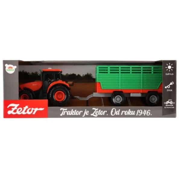 Traktor Zetor s vlekem – perfektní hračka pro malé farmáře! S světlem a zvukem vám pomůže v rozvoji jemné motoriky a představivosti.