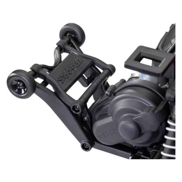 Díky zadní liště s kolečky Wheelie si můžete užít jízdu po zadních kolech bez obav o převrácení modelu. Odolný nylonový držák koleček navíc přináší extra ochranu pro motor a převodovku.