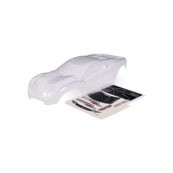 Traxxas karosérie Rustler 4×4 čirá – vyžaduje barvení, oříznutá, nanesena ochranná přestřikovací fólie. Držáky karoserie, rám a zadní křídlo se prodávají samostatně.