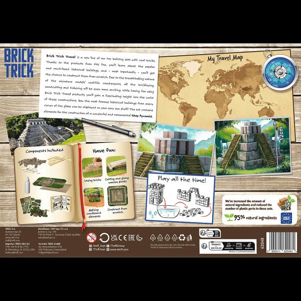 Objevte fascinující svět starověké architektury se sadou Brick Trick Travel – Step Pyramid. Postavte si vlastní stavbu z více než 200 ekologických, skutečných cihel vypálených při teplotě 1000 °C a kartonových dílků.