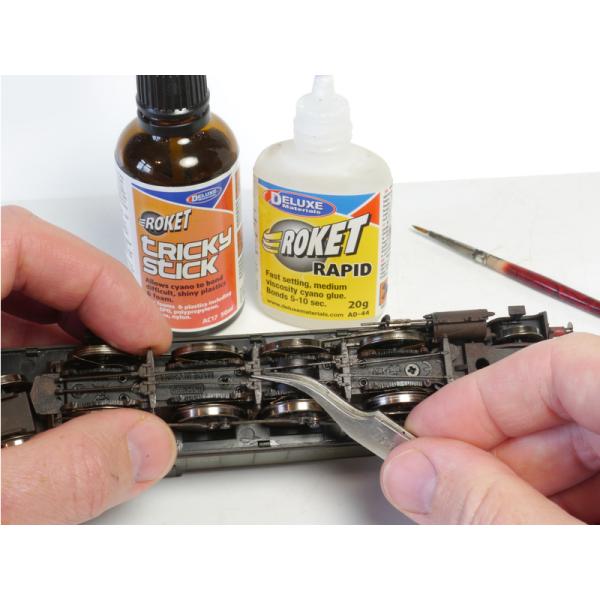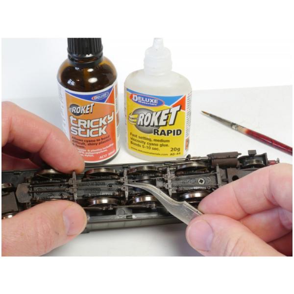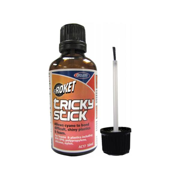Charakteristika:Tricky Stick je přípravek pro lepení těžko lepitelných plastů vteřinovými lepidly. Aktivuje povrch plastů pro lepší přilnutí lepidla. Nanáší se štětečkem na místa, která mají být lepeny.