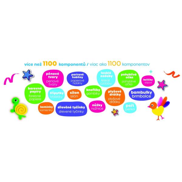 Obsahuje více než 1100 různých komponentů, se kterými si děti mohou vytvořit vlastní obrázky, zvířátka, květiny, rakety a další originální výtvory.