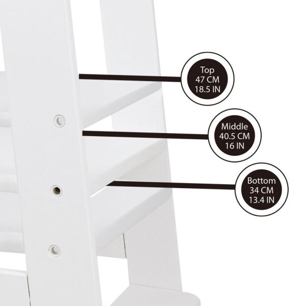 Dítě může vylézt na výukovou věž samostatně, schod od podlahy je ve výšce 20 cm, což pomáhá dítěti dostat se na věž bezpečně.