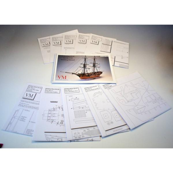 Set obsahuje kompletní sadu výkresové dokumentace modelu v měřítku 1:1 s obrázky jednotlivých detailů. V přehledném obrazovém manuálu jsou v měřítku nakresleny montážní sestavy, jejich kompletace a to včetně stěžňů a ráhen a způsob vázání lanoví. Vícejazyčný postup stavby rámcově upravuje logické sestavení jednotlivých komponentů.