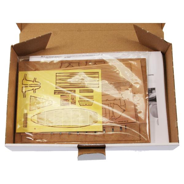 Model nemá přemíru detailů, je jednodušší, proto výrazně méně pracný a časově náročný, díky jednoduššímu stavebnímu postupu by jej měl sestavit průměrně zručný modelář nebo děti v modelářských kroužcích.Obsah balenia:Balení obsahuje sadu překližkových dílů, díly z mosazi, stavební desku s výřezy pro stavbu kýlu a kostry a manuál EN.Odporúčame dokúpiť:Pro stavbu doporučujeme koupit nářadí, lepidlo a barvy.