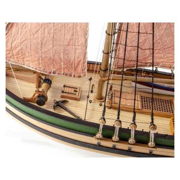 Stavebnice pro mírně pokročilé jsou vhodné pro stavitele, kteří již postavili jednodušší model pro začátečníky a mají již základní modelářské zkušenosti. Modely této obtížnosti jsou propracovanější, obsahují již více detailů a stavba je časově náročnější. Obsah balenia:Balení obsahuje sadu překližkových dílů, sadu dřevěných lišt o různém průřezu, sáčky s drobnými díly, díly z mosazi, lanoví, sadu výkresů a vícejazyčný manuál EN.Odporúčame dokúpiť:Pro stavbu doporučujeme koupit nářadí, lepidlo a barvy.