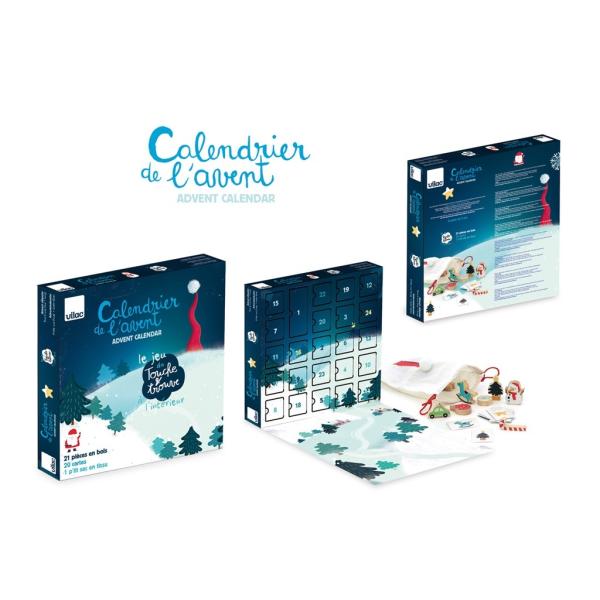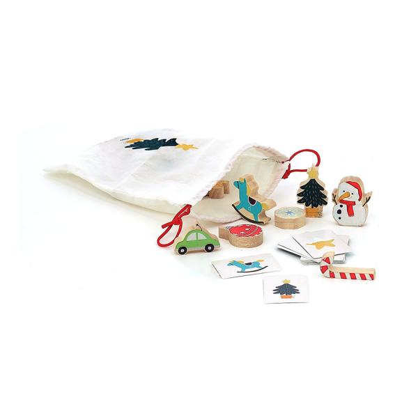 Adventní kalendář, který uvnitř skrývá hru hmat a najdi! V každém z 24 okének děti najdou dřevěný dílek nebo papírovou kartičku, nechybí ani textilní pytlík.