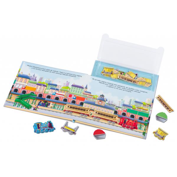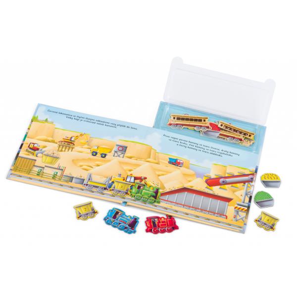 Húúú, húúú – pozor, přichází vlak! V přístavu, na železniční stanici, na stavbě a po náročném dni také ve depu – tam všude najdeme lokomotivy a vagóny na osobní nebo nákladní přepravu. Tam všude nám vláčky pomáhají. Na každé stránce této knihy objeví děti krátký příběh, který mohou spoluvytvářet pomocí magnetek. A když se do sytosti vyhraje, mohou všechny vozy znovu „zaparkovat“ zpět do úložného boxu, kde budou připravené na další skvělou zábavu. Kniha obsahuje 21 ks magnetek.