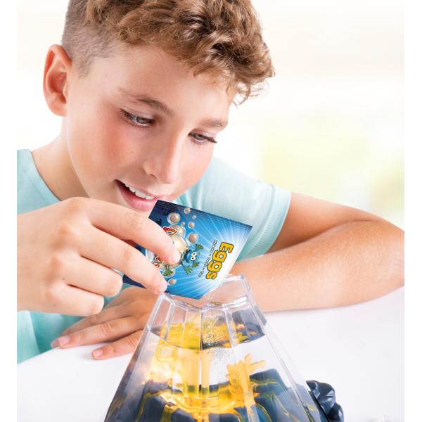Pozvěte do svého domova červené vodní dráčky! Toto vulkanické akvárium obsahuje živé korýše typu Artemia Salina, také známé jako solné žábronožky, doplněné o speciální krmivo (s přísadou mořské řasy Heamatococcus pluvialis, která obsahuje červené pigmenty astaxanthin), které těmto malým tvorům dodá nádhernou červenou barvu. Okouzlující LED osvětlení akvária spolu s mechanickým efektem blikání, imitujícím vulkanickou aktivitu, v kombinaci s červenými dráčky vytváří opravdu fascinující zážitek.