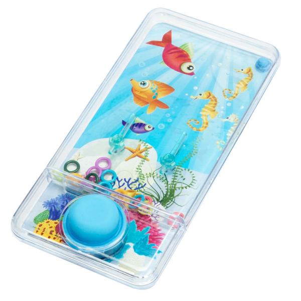 Vodní hra – naplňte vodou, stlačením tlačítka rozprouděte vodu a pokuste se dostat kroužky na své místo.