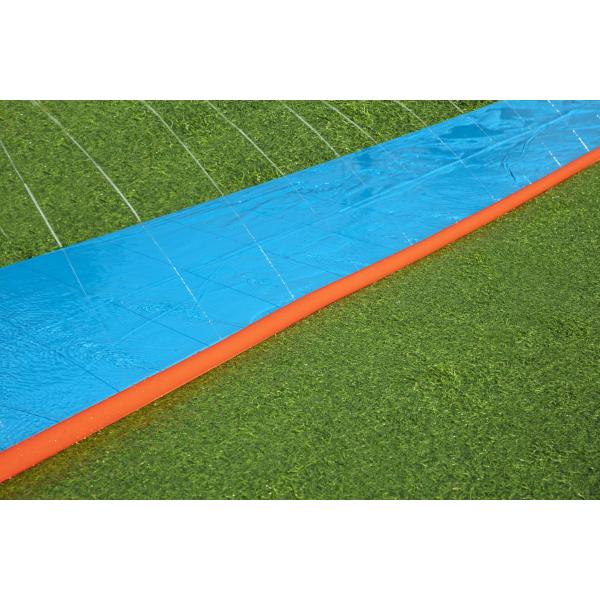 Vodní zahradní skluzavka Bestway H2O GO 488 cm je ideální pro děti od 3 let! Skluzavka poskytne dětem pohyb a skvělou zábavu. Skládá se z 1 dráhy o délce 488 cm a vodních postřiků, které zajišťují dostatečný skluz a zároveň ochlazují tělo. Na konci tratě je umístěn nafukovací límec, který dětem zajistí bezpečnost a měkké přistání. Vodní skluzavka Bestway se snadno instaluje – stačí ji položit na pevný a rovný povrch a poté ji připojit k zahradní hadici. Ideální pro zahradu a pozemek. Je vyrobena z vinylového materiálu, který je zárukou vysoké kvality a odolnosti proti poškození. Současně je to delikátní a bezpečný materiál pro citlivou pokožku dítěte. Značka Bestway připravila tento produkt především pro nejmladší nadšence vodního šílenství! Parametry: Délka: 488 cm Materiál: PVC Tloušťka materiálu: 0,20 – 0,22 mm Věk: od 3 let
