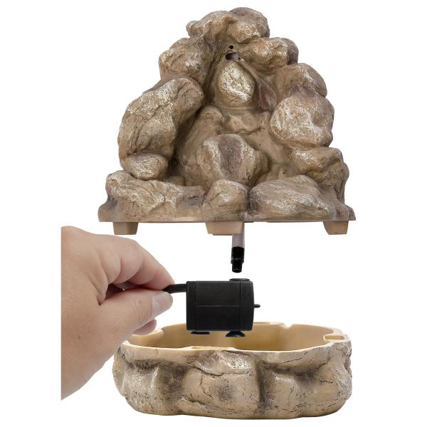 Ideální pro plazy a obojživelníky. Zvyšuje úroveň vlhkosti v teráriu. Tekoucí voda podporuje prorozené chování plazů. Včetně čerpadla Snadné použití a údržba Velikost: 21 x 20,5 x 20 cm