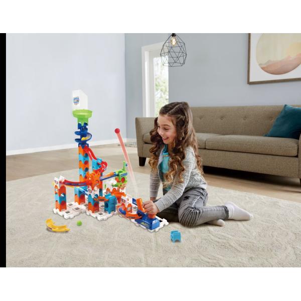 Poznejte nával vzrušení při odpalování kuliček. Sledujte dráhu a soutěžte s rodinou a přáteli. Kreativní a zábavná kuličková dráha nabízí neomezené možnosti sestavy a hry. Lze spojovat s ostatními drahami. Obsahuje: podrobný barevný návod, jak lze dráhu sestavit 62 dílků 5 kuliček Věk : 4+