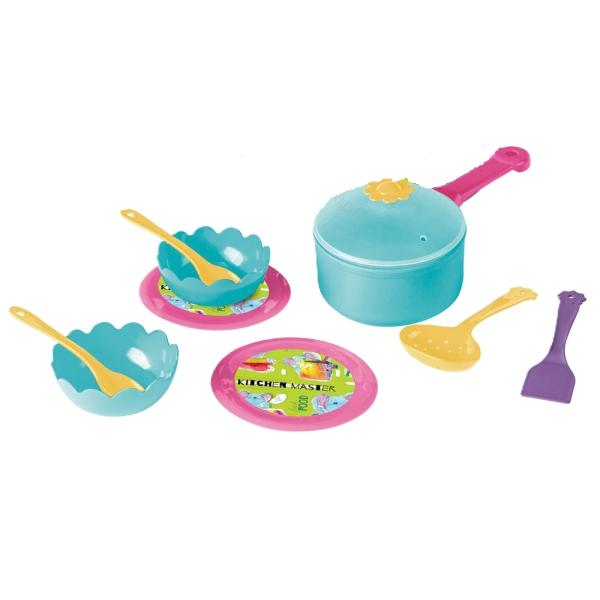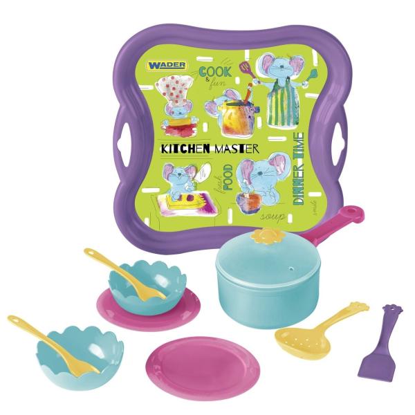 Sada dokonce obsahuje i tác, na kterém se podávají různá jídla.Obsahuje tác, pánev, 2 talířky, 2 misky, kuchyňské náčiní a příbor.