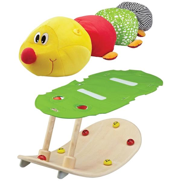 Měkká a pestrobarevná houpací hračka s přátelským charakterem, která přinese spoustu zábavy. Dětem pomůže s rozvojem motoriky, rovnováhy, procvičením svalů rukou i nohou a zároveň poslouží jako krásná dekorace pokoje! Textilní část houpačky můžete oddělit, roztomilá housenka tedy může posloužit i jako velký plyšák. V nose housenky je vestavěné chrastítko s jemným zvukem. Základna houpačky je vyrobena z masivního dřeva a je opatřena dorazy zajišťujícími bezpečnost proti převrácení. Hlavní vlastnosti: oddělitelná textilní část vestavěné chrastítko