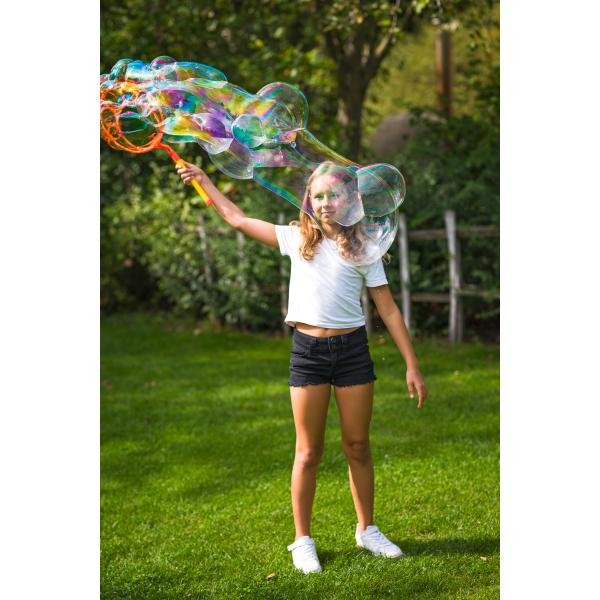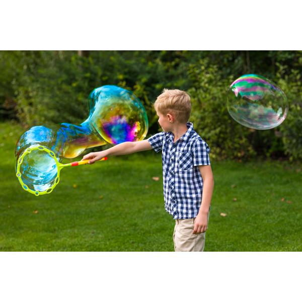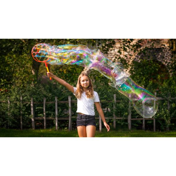 Obsah balení: 2x obrovský bublinkový prut, 1x miska, 300 ml roztoku na bubliny.