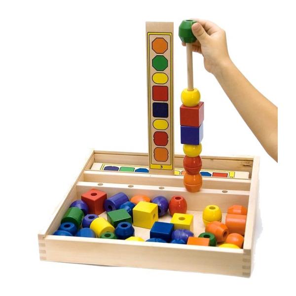 Navlékadlo „Logik“, výrobce Woody . Dřevěné navlékadlo Logik přináší zábavnou formu učení. Dítě podle předlohy nakreslené na dřevěných destičkách navléká na tyčku barevné korále tak, aby odpovídaly předloze. Motoricky-didaktická hra, která nenásilnou formou učí děti rozeznávat základní barvy a tvary.
